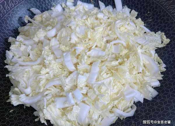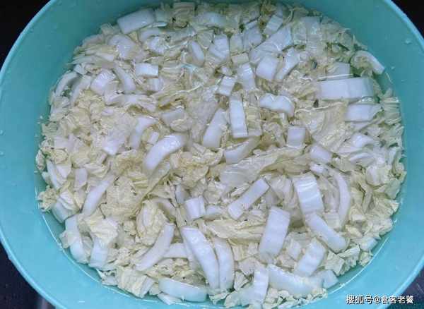 1取新鮮白菜切成細條,放入鹽水中浸泡片刻,吃著更放心。