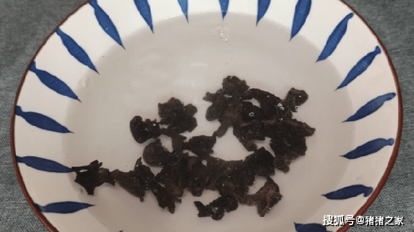 1.準備一把黑木耳,倒入溫水泡發,再加入一些面粉,面粉有很強的吸附能力,可以把木耳表面的一些灰塵和臟東西清洗得更加幹凈。用勺子攪拌均勻後先放一旁浸泡10分鐘。然後清洗幾遍後撈出來放入小碗中備用。