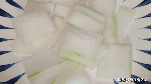 3.準備一塊清洗幹凈的冬瓜對半切開,切掉冬瓜皮和瓜瓤,然後切成薄一點的片。冬瓜用來做湯,或者炒著吃都非常不錯,尤其是夏天多吃點冬瓜,對身體非常的友好。