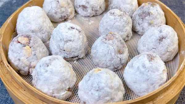 8、全部揉完後,把做好的紅豆窩窩頭,放到面粉中滾一圈,取出來放入清水中,再裹上一層糯米粉,把所有窩窩頭都做成這個樣子。