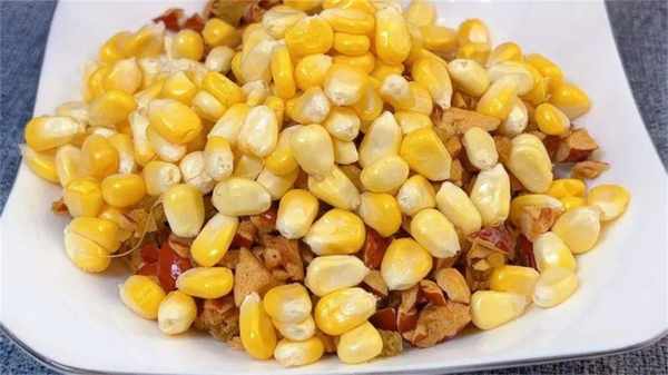 4、接著準備50克玉米,倒入適量的清水,把玉米淘洗幹凈,洗去表面殘留的灰塵,洗凈後控水撈出,放到紅棗碎上面備用。
