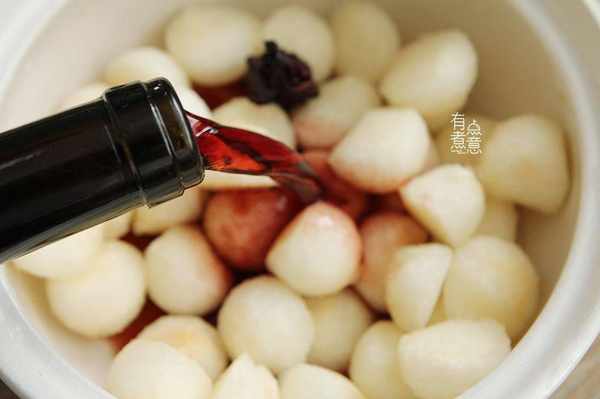 把雪梨撈起瀝幹水,放進瓦鍋或者玻璃鍋,再放入洛神花。倒入差不多沒過雪梨的紅酒,如果不喜歡酒味太濃,用一半紅酒和一半清水也行。然後再放入冰糖,喜歡甜一點的就放多點,自己按照自己的口味來放。