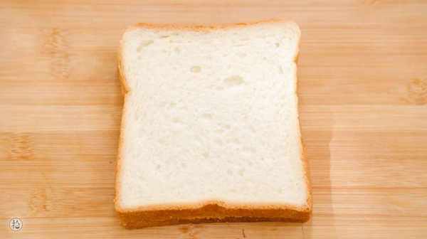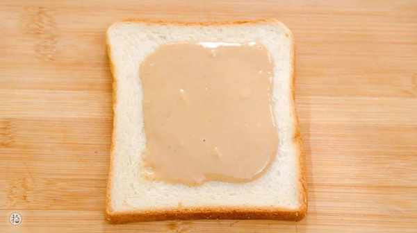 2.取一片吐司,抹上自制好的花生醬,再覆蓋上另外一片吐司。
