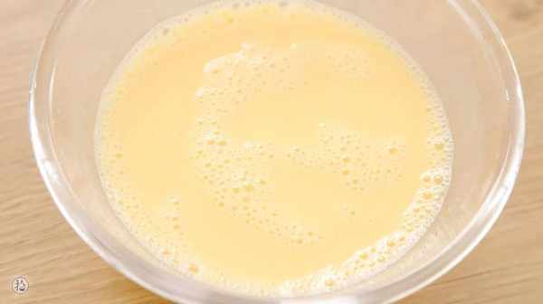 5.雞蛋加入牛奶打散成蛋液。