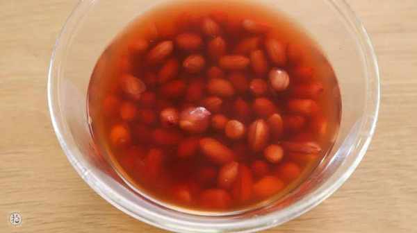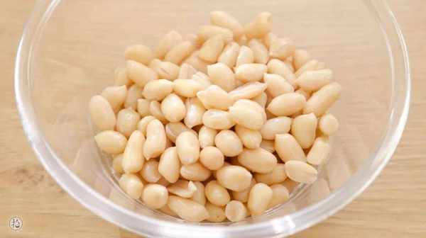 1.把花生提前放入冰箱浸泡過夜,去皮。