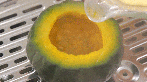 4.南瓜燉蛋:貝貝南瓜挖去瓜瓢,放入蒸鍋蒸15分鐘。
