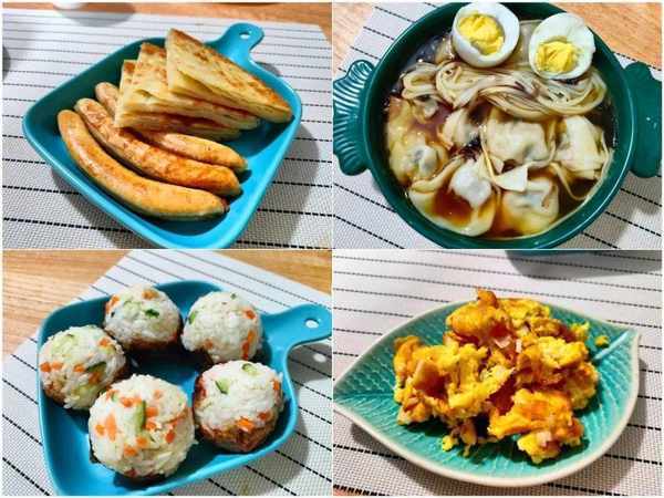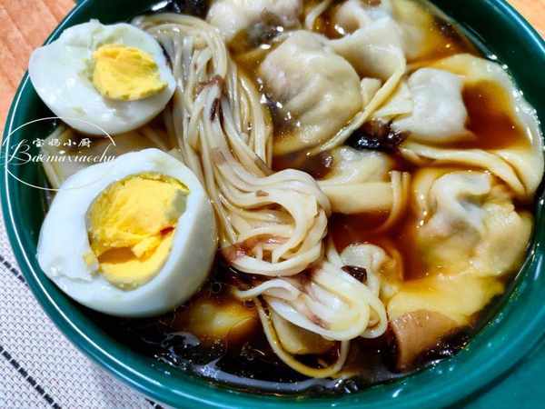 做這樣的一份早餐不費啥事,稍微麻煩點的是餛飩,是我提前就包好冷凍的,搭著掛面條煮,增加口感,孩子也愛吃。