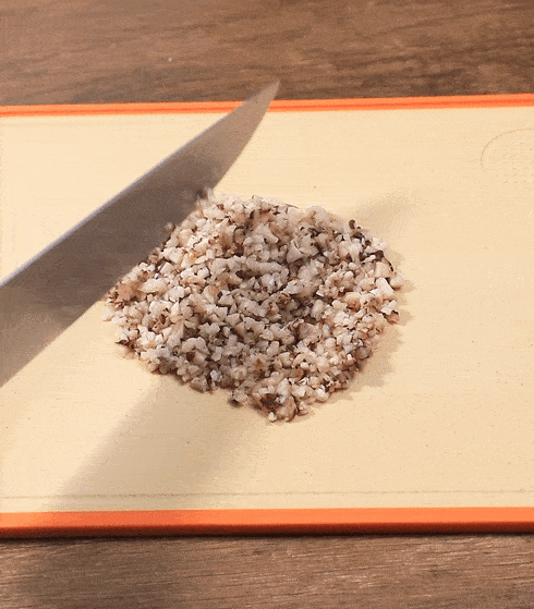 2.香菇焯水2分鐘,然後剁碎。