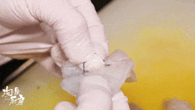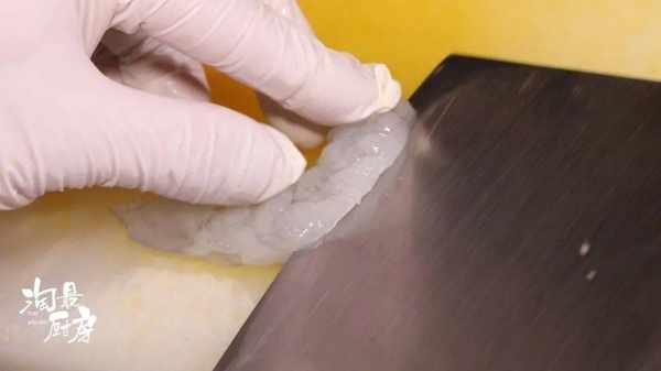 將蝦仁開背,從中間抽出蝦線。
