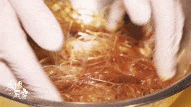 用手混合均勻,直至粉絲表面均勻上色。