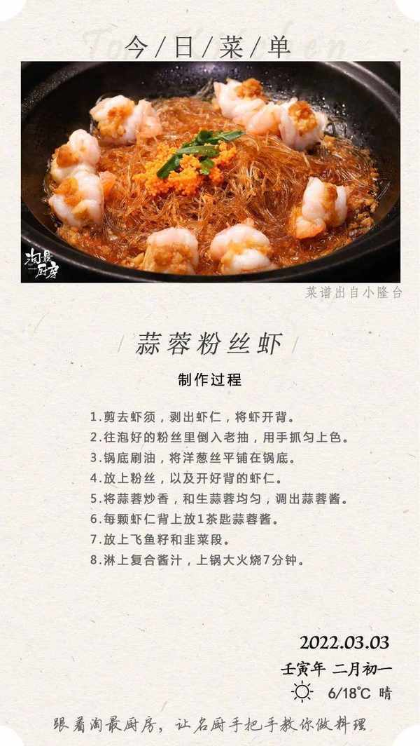 在專做臺州海鮮的小隆臺裡,這道幾乎桌桌必點的蒜蓉粉絲蝦——還曾經入選過上海「蒜蓉蝦」菜品榜第一名。