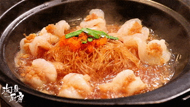 粉絲也絲毫不比蝦肉遜色!吸飽瞭鮮美的湯汁,晶瑩剔透,嚼勁十足,入口還有魚籽在嘴裡爆開。