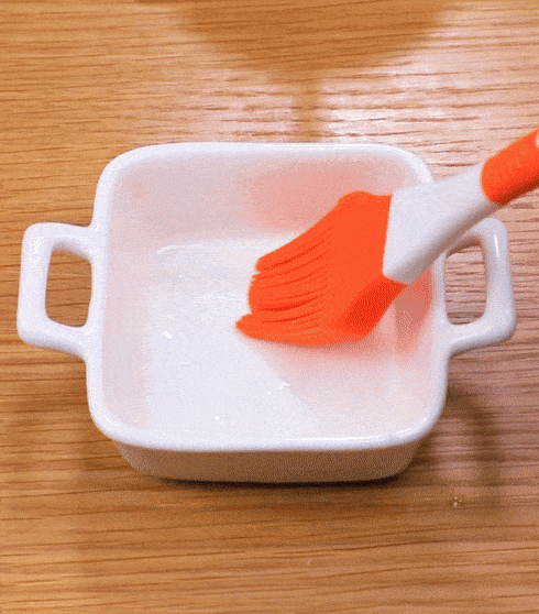 4.容器刷油,墊上矽油紙,倒上南瓜牛肉泥,整理平整,包上保鮮膜,用牙簽戳幾下,水開蒸20分鐘。