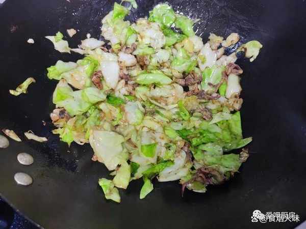 包菜、魷魚幹、生薑、蒜頭、醬油、蠔油、食用油