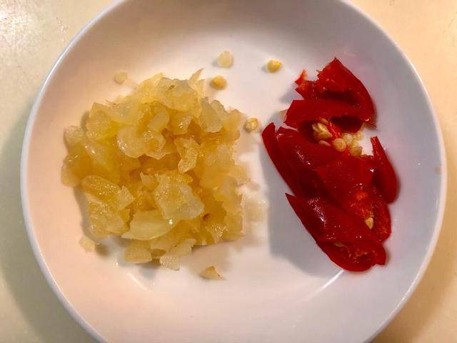 1、海鮮超市能買到這種切好的冷凍花枝塊,︀口感沒有新鮮現切花枝塊Q彈,︀但方便是有的,︀烹煮前放冷藏低溫解凍,︀拆封後泡水洗過瀝幹。