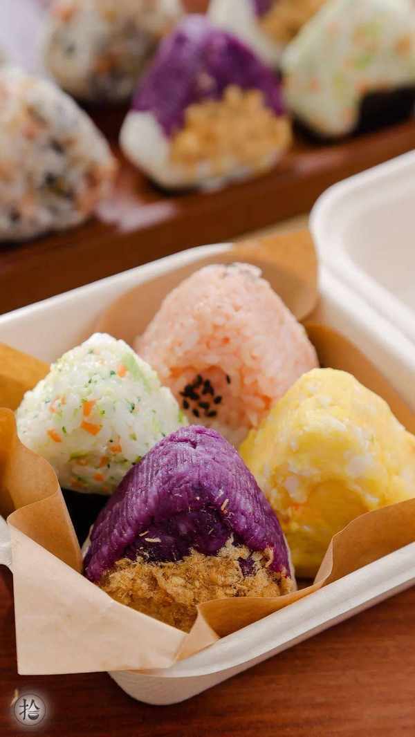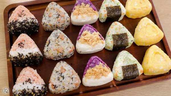 2.放入三角飯團模具,壓成飯團,底部包上海苔片就可以瞭。