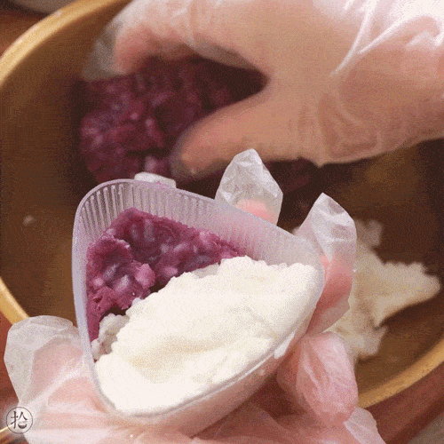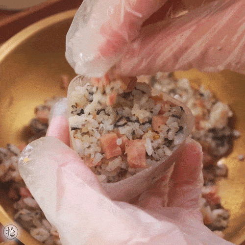 3.放入飯團模具裡,壓成飯團就可以瞭。