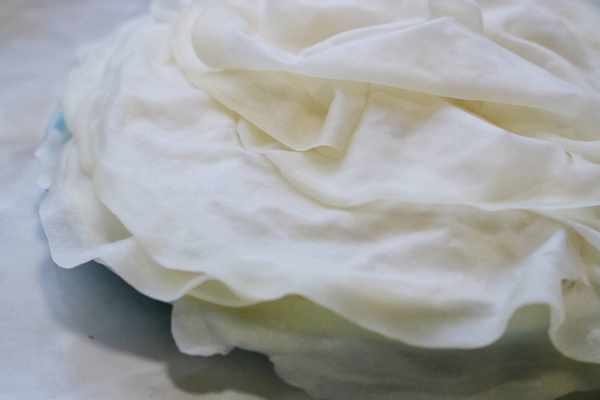 5、蒸熟後的餃子皮,趁熱揭開,薄如蟬翼看著透光。