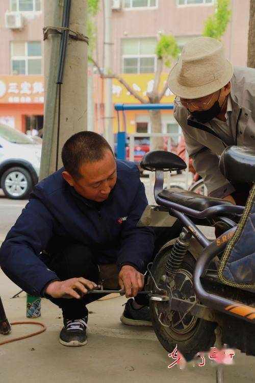 2023年4月14日,河北衡水,修車師傅為顧客修理電動車。(王亞楠攝/光明圖片)