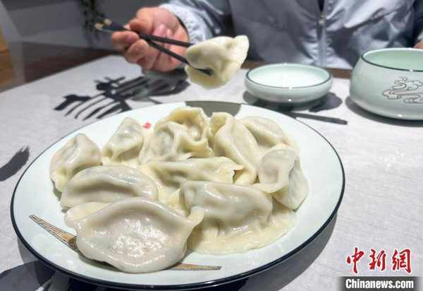 在山東煙臺一傢水餃店,民眾品嘗剛出鍋的鮁魚水餃。 中新社記者 王嬌妮 攝
