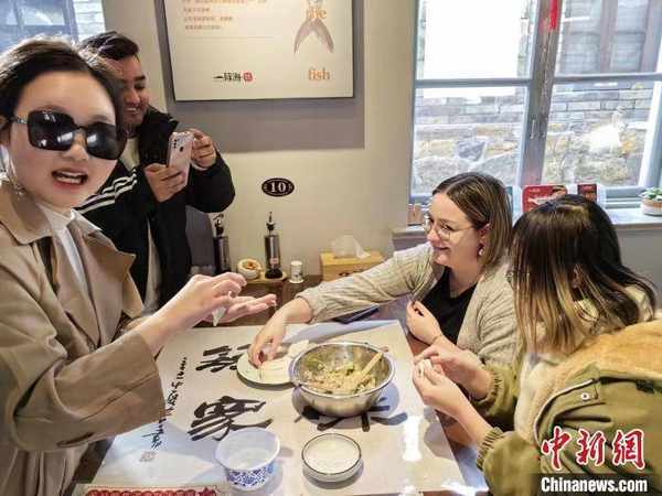 圖為外國留學生在山東煙臺學習包鮁魚水餃。 中新社記者 李長亮 攝