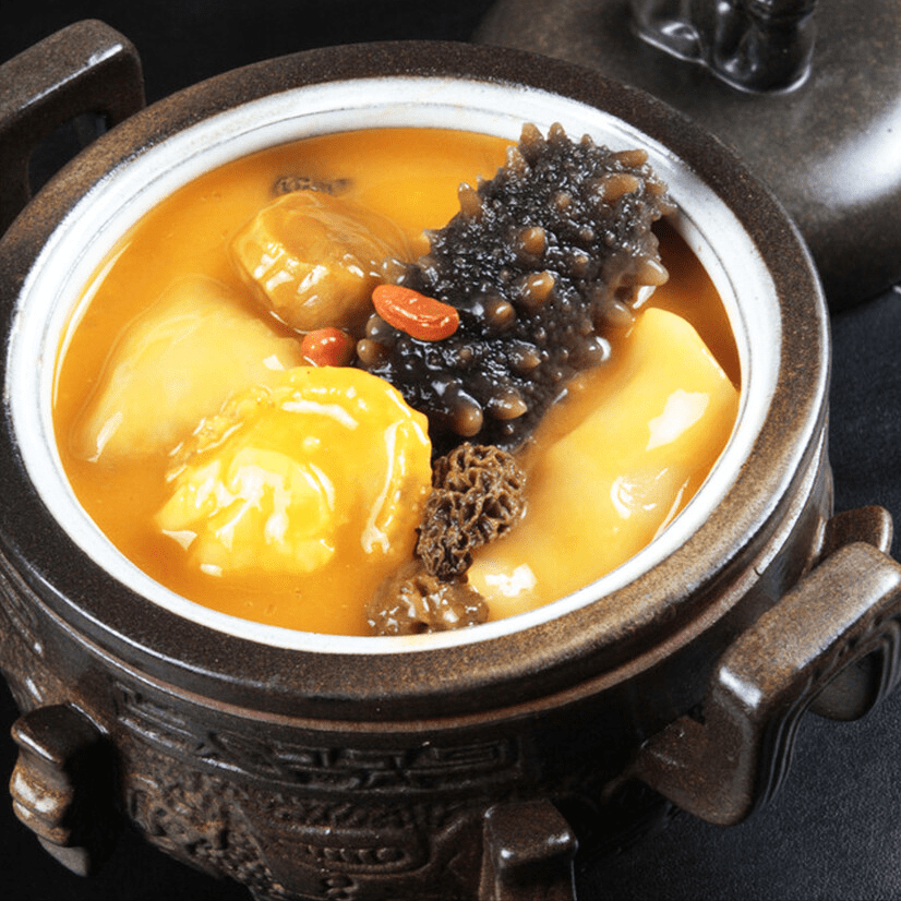 正宗的佛跳墻中有十幾種名貴的食材,比如有鮑魚、海參、魚唇、墨魚、蹄筋、瑤柱等,加入高湯和福建老酒,並用荷葉將壇口密封起來,沸騰後接著用文火煨制而成。
