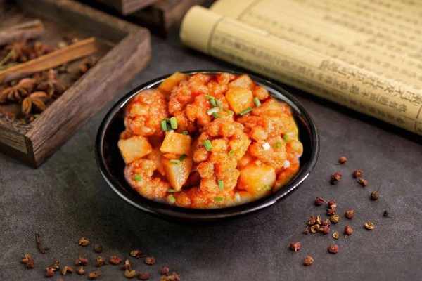 同時還有荸薺作為配菜,最後再配以紅糟、香醋、白糖等調味料即可制作完成。荔枝肉是閩菜中酸甜口味類菜肴的典型代表之一。