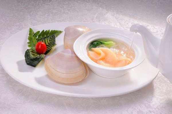 雞湯氽海蚌是一道集色、香、味、形於一體的佳肴。入口鮮美、口感飽滿,海蚌脆美爽口,口感十分豐富,吃完後唇齒留香。