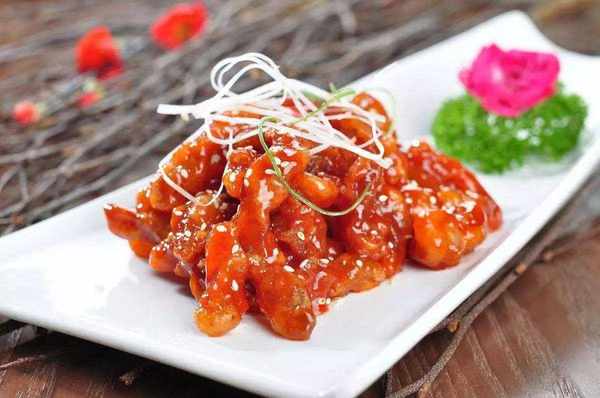 正宗的糖醋汁是先將番茄醬入油炒香,然後再加入用糖、鹽和醋調好的料汁炒至濃稠,最後倒在炸制好的豬裡脊肉上,撒上芝麻。