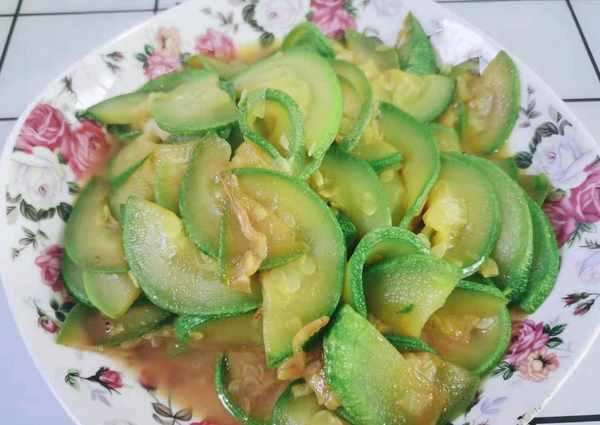 3、放入一勺生抽、適量的鹽、少許清水,蓋上蓋子,中小火燜至西葫蘆變軟(一定要蓋上蓋子燜一會兒,這樣西葫蘆才入味)