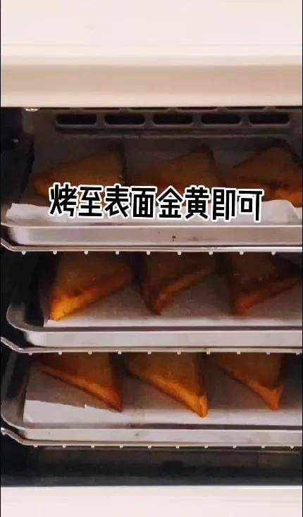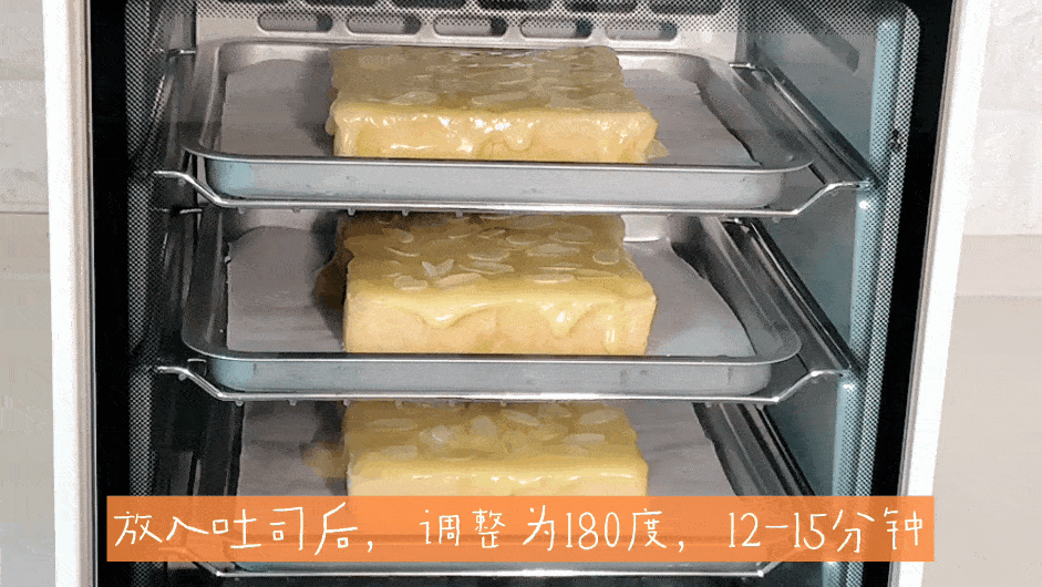 2、烘烤的溫度和時間僅供參考,烤至有漂亮焦斑就要出爐,如果烤過瞭表面就沒有一層奶皮瞭。另外因為是3層同烤,烘烤至中後途可根據著色情況把烤盤上下裡外轉換位置,以達到更好的烘烤效果。