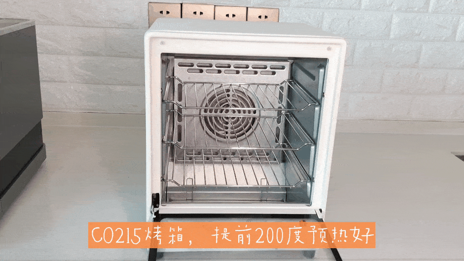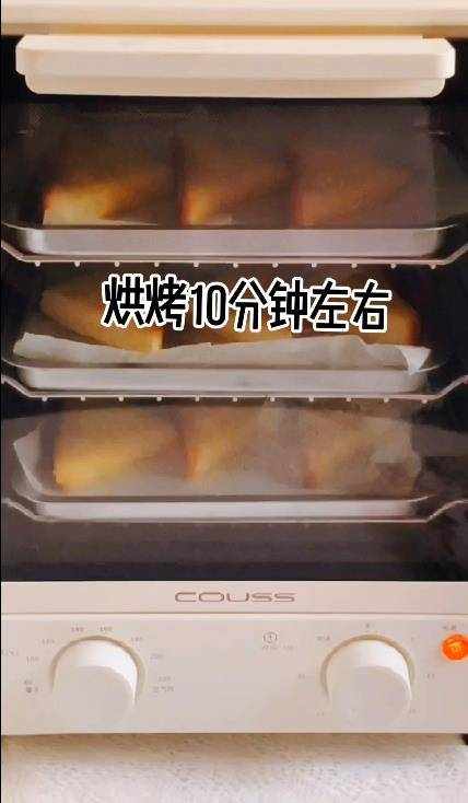 「7」卡士CO215空氣炸鍋電烤箱,提前200度預熱好,3層吐司放入,溫度調整為180度,烤12-15分鐘。