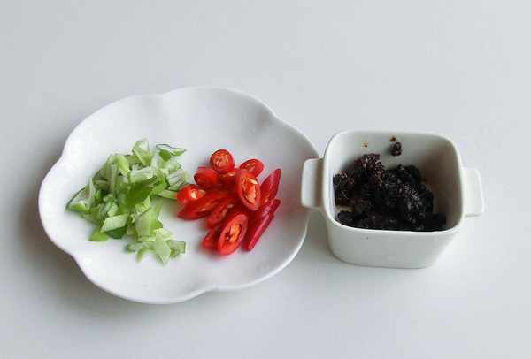 調料:豆豉醬10克,香蔥1根,味極鮮醬油10克,料酒8克,白糖5克,香醋、香油適量