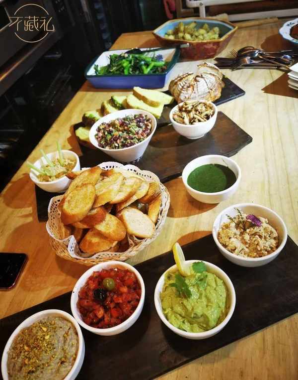 小小面包店到瞭晚上,還轉身變成面包&素食晚餐小館,大傢一起動手,分享素食新吃法。
