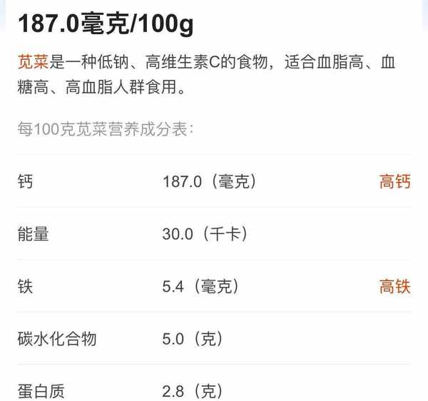 莧菜含鈣量見下圖,每100克莧菜含鈣187毫克。