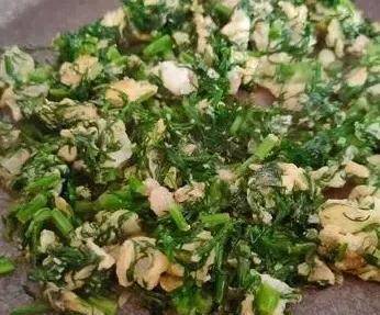 3、放入薺菜,燉炒30秒,然後把雞蛋液均勻地倒在薺菜表面,先不要用鍋鏟動它,利用薺菜和湯汁的熱度使雞蛋液漸漸凝固,待雞蛋差不多凝固上瞭就可以翻炒瞭,翻炒幾下就好瞭,然後放點鹽,再翻炒均勻,關火盛盤。