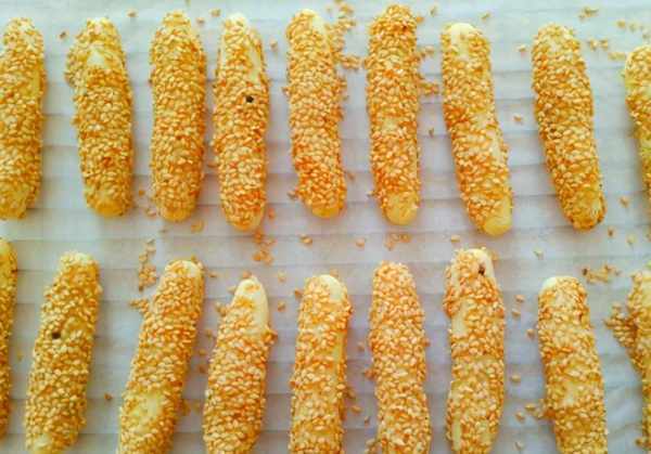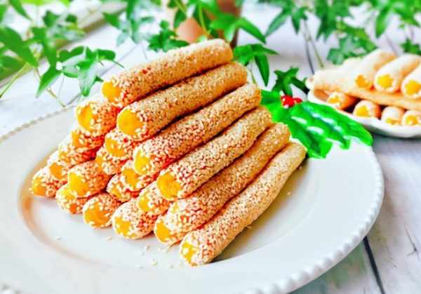 3、糯米小條需要切得均勻一些,薄厚、粗細、長短等,噴灑少許的清水是為瞭增加粘性,更容易粘牢白芝麻,否則很容易會掉落,用烤箱烘烤或者是平底鍋煎都行,自行選擇,一次吃不完,可以密封好放冰箱保存,吃的時候最好再加熱下,味道更好。