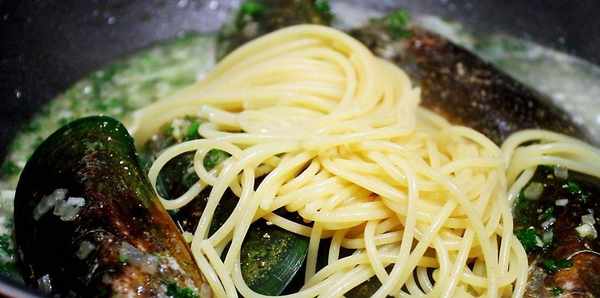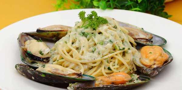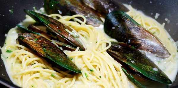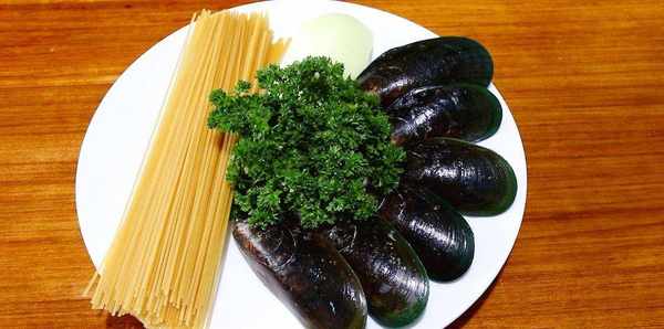 青口貝,歐芹,大蒜,洋蔥,意大利面,淡奶油,鹽,黑胡椒碎,黃油。
