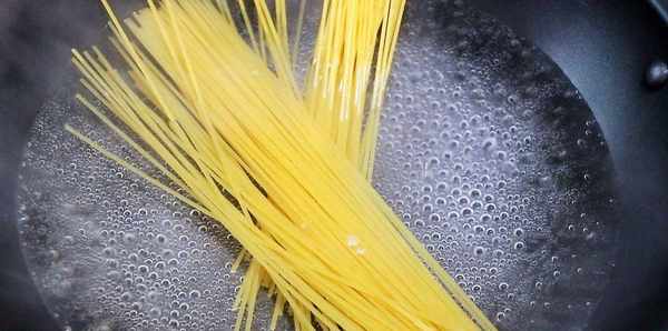 鍋內倒水,水燒開後,放入意大利面煮制。