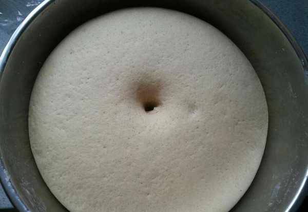 2、再倒入適量的泡打粉、糖、鹽和水,用手仔細地和面,把面和成光滑的面團,用幹凈的濕佈蓋上一會兒,讓面團醒一下;