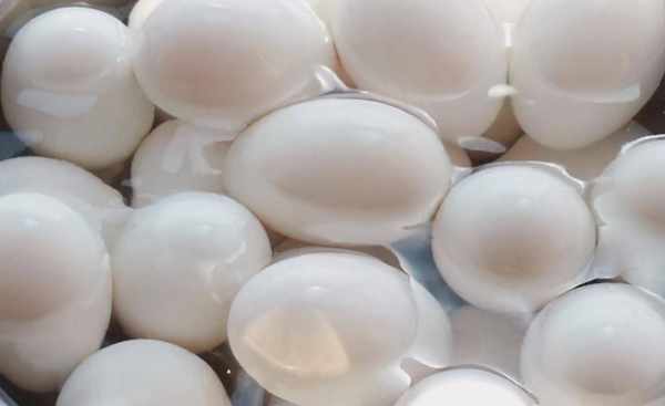 ②鵝蛋晾幹後,一定要避免生水的接觸,白酒的加入,也是為瞭避免鵝蛋淹壞。