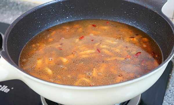 湯汁還剩三分之一多一點的時候轉大火收汁兒,嘗一下味道,看看需要加一點什麼