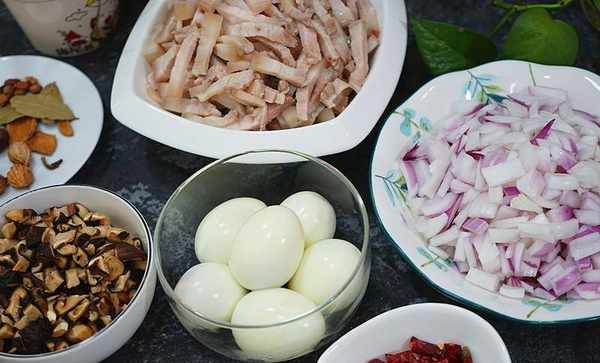 五花肉兩塊 ,幹香菇十幾個