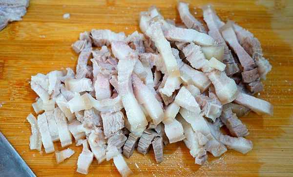 鍋裡上水,準備好的五花肉丟進去,放一點大蔥生薑塊。【話說現在的肉肉還真不便宜,就這兩刀快七十大洋呢】 大火煮開以後在煮十幾分鐘,煮的時候上面的浮沫記得弄掉 好瞭以後肉拿出來,湯別丟掉瞭啦,等會有用