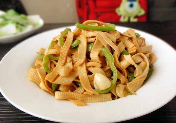 小編總結:青椒豆腐皮炒肉,可用豬肉亦可用雞肉,完全可隨意做搭配,這道菜蔬菜、豆制品和肉搭配,營養均衡,豆腐皮的價格相對比較實惠,4塊錢能買2張,我在菜市場碰到瞭從不會錯過,買幾張豆腐皮切成絲下鍋一炒,一道簡單快手的炒菜便可上桌,這道菜鮮香更嫩滑,讓人吃一次便會愛上,比做其他的菜更方便,學會瞭這個做法,當然上班族的便當也是非常不錯的選擇,大方更有面子。