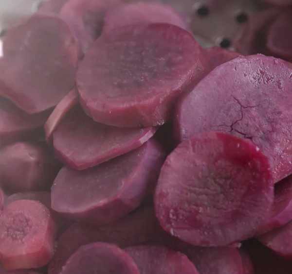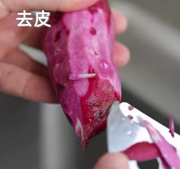 先把紫薯洗凈去皮。