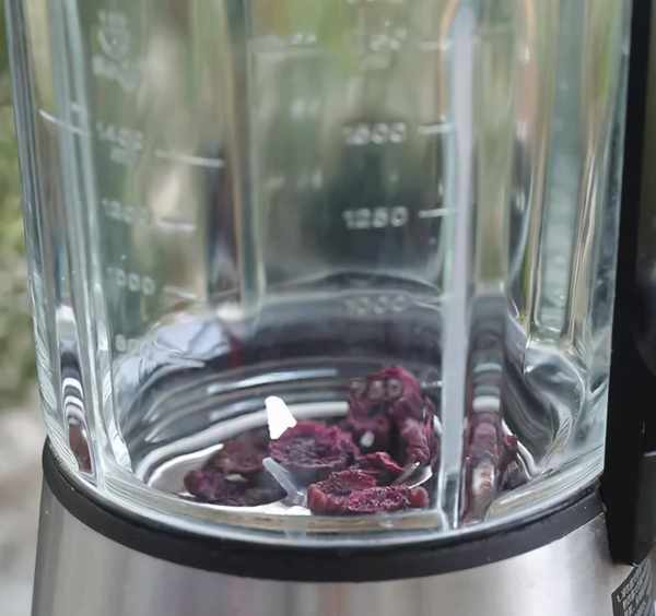 把幹透的紫薯丁放入破壁機用最高速研磨成粉。由於紫薯丁大小和硬度不同,所以研磨時間也不同,可以研磨30秒觀察一下是否細膩,然後繼續按30秒來增加研磨次數,最終達到細膩的狀態即可。