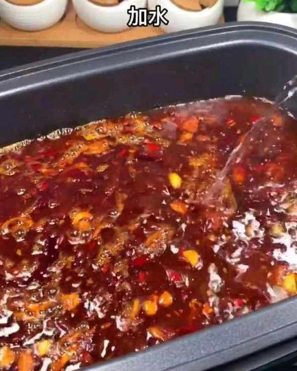 3、將火鍋底料炒開之後,鍋中加入少量開水,等待水開即可。