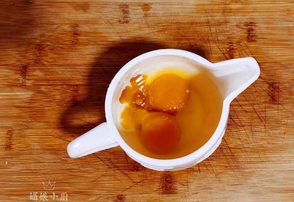 4、雞蛋打入碗裡,加1勺黃酒或料酒,一點點鹽,打勻蛋液
