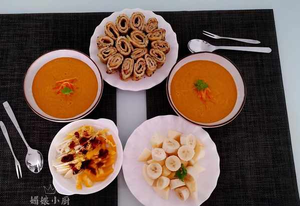 早餐是我傢最重要的一餐,每天都是自己在傢做,從不去外面買,也不去早餐店吃。早餐我們都吃得比較多,稀的熱飲搭配幹的主食,外加一份小炒菜和水果。有時也會看傢裡的食材拌菜或是蘸醬,比如這個早餐為瞭節省點時間,娃娃菜和彩椒洗凈後切小條直接蘸醬吃,也是脆嫩多汁,清爽可口。以前不習慣的蔬菜蘸醬生吃,北方生活久瞭便也慢慢喜歡上。